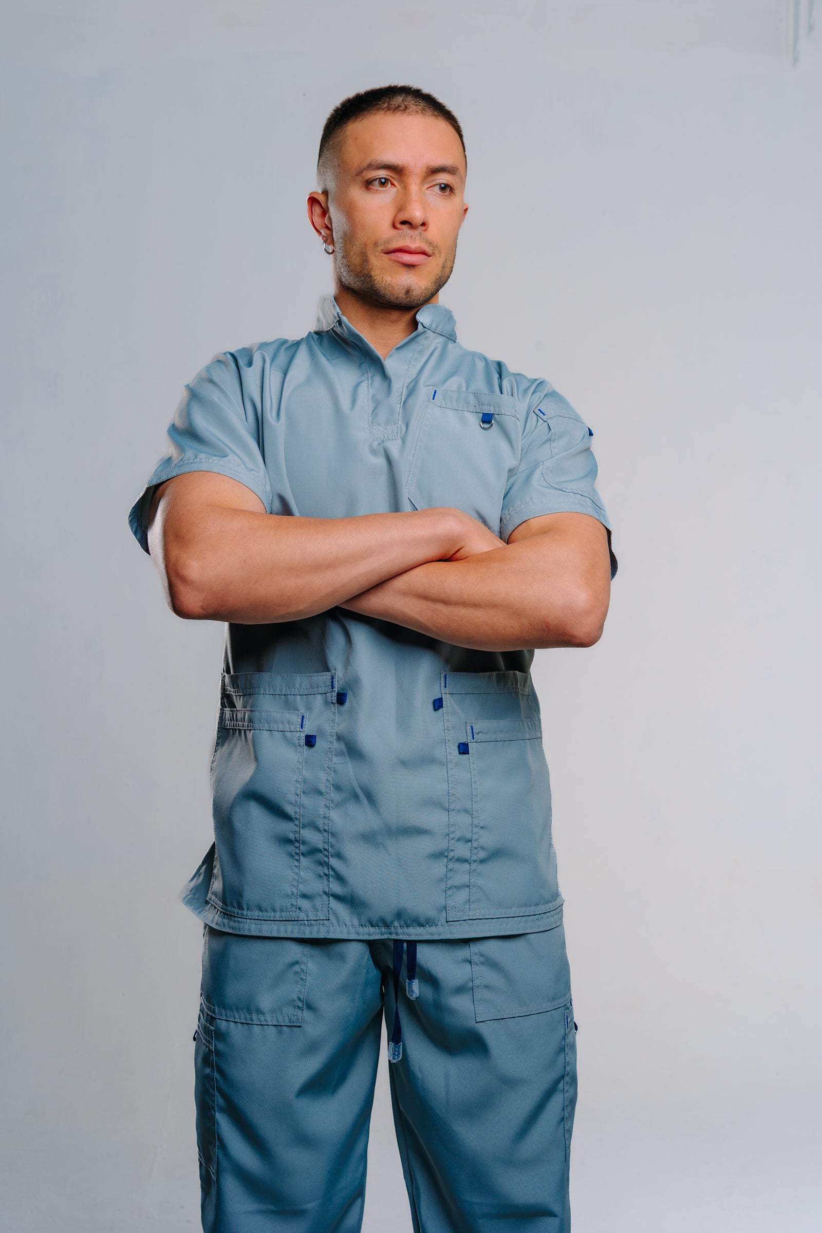 Cuello Solapa con Multi Bolsillos Elegancia y funcionalidad en un solo uniforme: cuello en solapa que aporta presencia profesional y múltiples bolsillos para un uso práctico y eficiente.