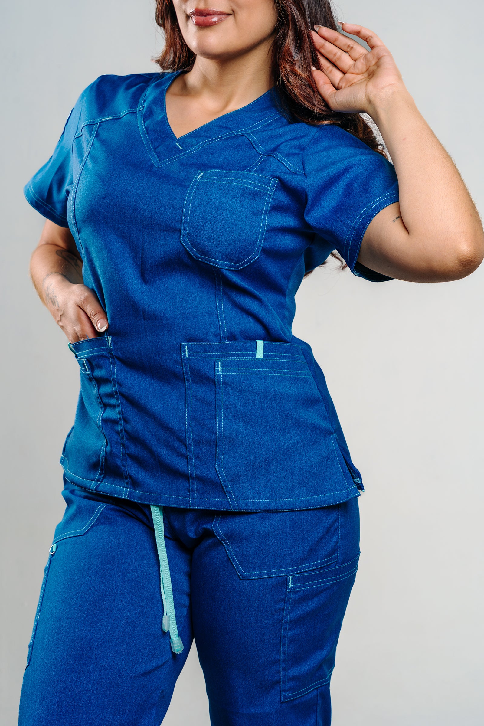 Uniforme antifluido confeccionado en tela Lafayette con cuello redondo en punta, ideal para profesionales que buscan resistencia, comodidad y diseño moderno. La tela Lafayette ofrece durabilidad superior, protección antifluidos y fácil mantenimiento, garantizando un look impecable durante toda la jornada.